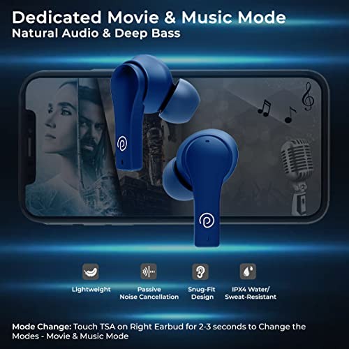 pTron Bassbuds Tango in-Ear TWS Earbuds, TruTalk AI-ENC Calls, Movie Mode, 40Hrs Playtime, Bluetooth5.1 Headphone with HD Mics, Touch Control, IPX4 Water-Resistant & Type-C Fast Charging (Royal Blue)