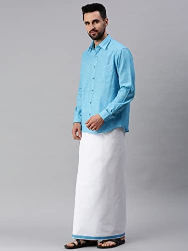 RAMRAJ COTTON Mens Cotton Plain Shirt and Dhoti Set