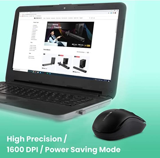 ZEBRONICS Zeb-Dash Plus 2.4GHz High Precision Wireless Mouse with up to 1600 DPI, Power Saving Mode, Nano Receiver and Plug & Play Usage - USB